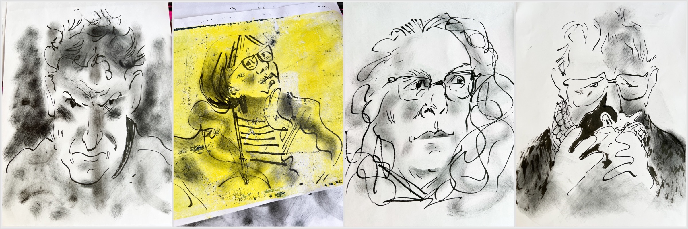After I started with some passers-by whom I saw in the window on Monday I realized that I lived in the wrong place to find so many subjects and quickly devised a plan: I scanned my weekly plan for things that I planned to do anyway but which had a potential of seeing people and introduced a little extra time to those activities for sketching. Some of it was in person, some or online, some involved attending a lecture, some watching a sport. And I also looked into my options for aligning this with an idea of finding like-minded people - this is how I ended up joining pencils4tea on Thursday and Suhita's substack group on Friday.