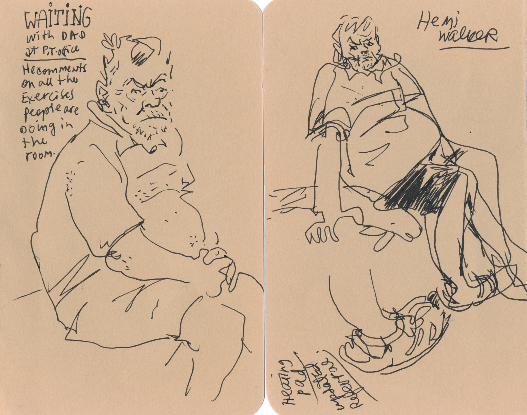 My parents learned that if something is standing on a street with the sign "FREE" it is free to take and are now participating in the whole exchange economy - leaving things and picking up things almost daily. This is how an exchange of chairs and tables was facilitated and the latest item is a huge tripod (???). I have no understanding of how they carry things with the limited mobility situation - but they are surely having fun. Many plants were brought from the street too and I am planning to sketch their little patio garden. There are wisteria, nasturtium, and morning glory grown from seeds, succulents, and geraniums from the neighbors. There is a mystery about a fruit that is hanging above their patio too - I hope it is not poisonous - it will be hard to convince Dad to not try it when it is ready... :) Multiple visits to doctors are teaching us all lessons in patience and shades of honesty.